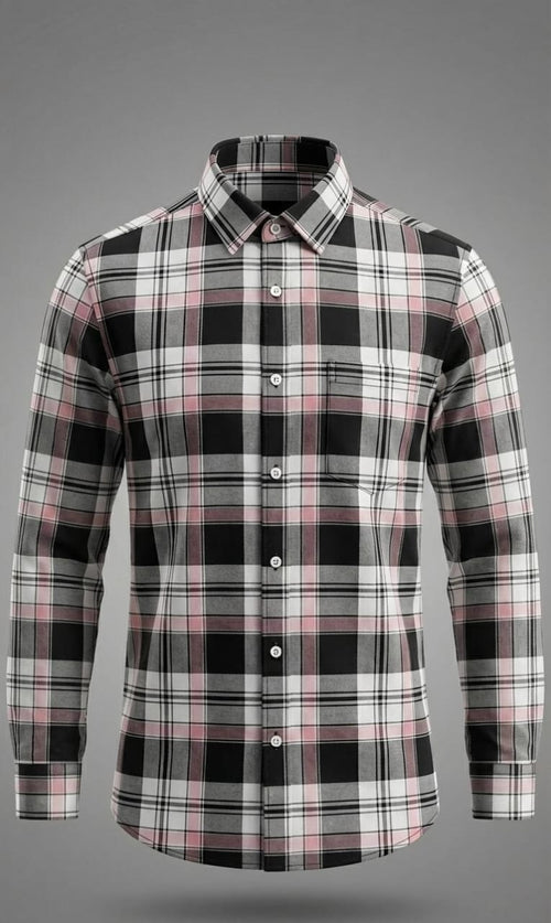Classic Light Yellow & Black Check Long-Sleeve Shirt